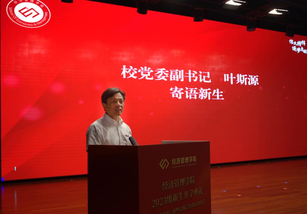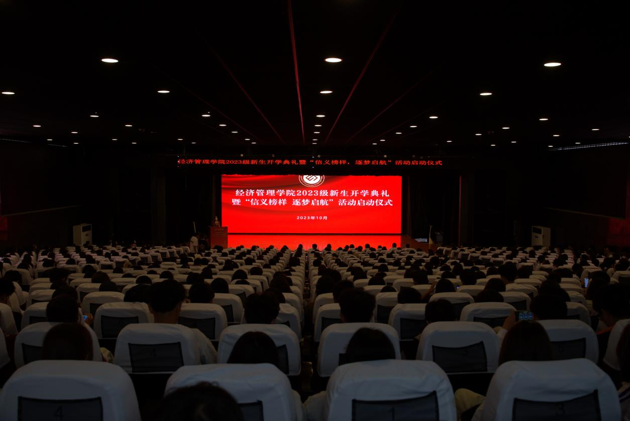 10月16日下午,金年会jinnianhuicom2023级新生开学典礼暨“信义榜样、逐梦启航”启动仪式在丹溪文化厅举行。校党委副书记叶斯源、中国建设银行义乌分行副行长徐杨义、学院领导班子成员、专业负责人、新生班主任、教师代表以及学院2023级全体新生参加。