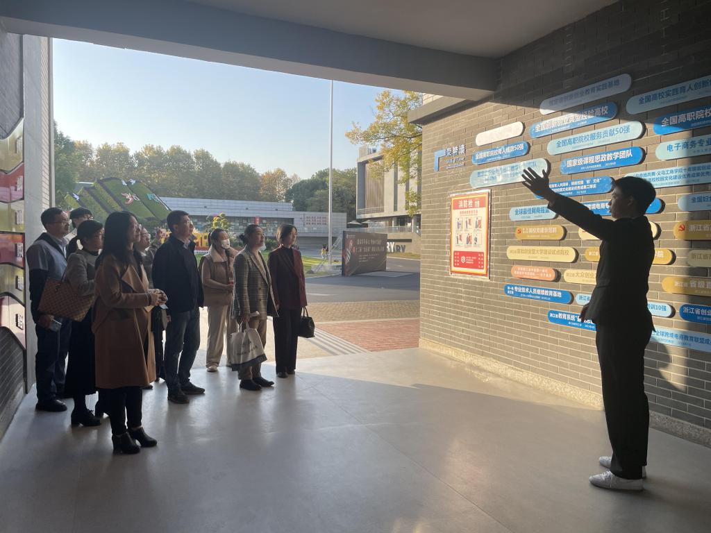 会后,浙江师范大学行知学院商学院院长麻勇爱一行在金年会jinnianhuicom负责人的陪同下参观考察了数字贸易实训基地、创意园等地。