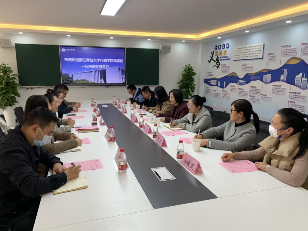 11月29日下午,浙江师范大学行知学院商学院院长麻勇爱一行7人来我校考察交流。金年会jinnianhuicom教学负责人,金融服务与管理、工商企业管理专业负责人及相关专任教师参加座谈。