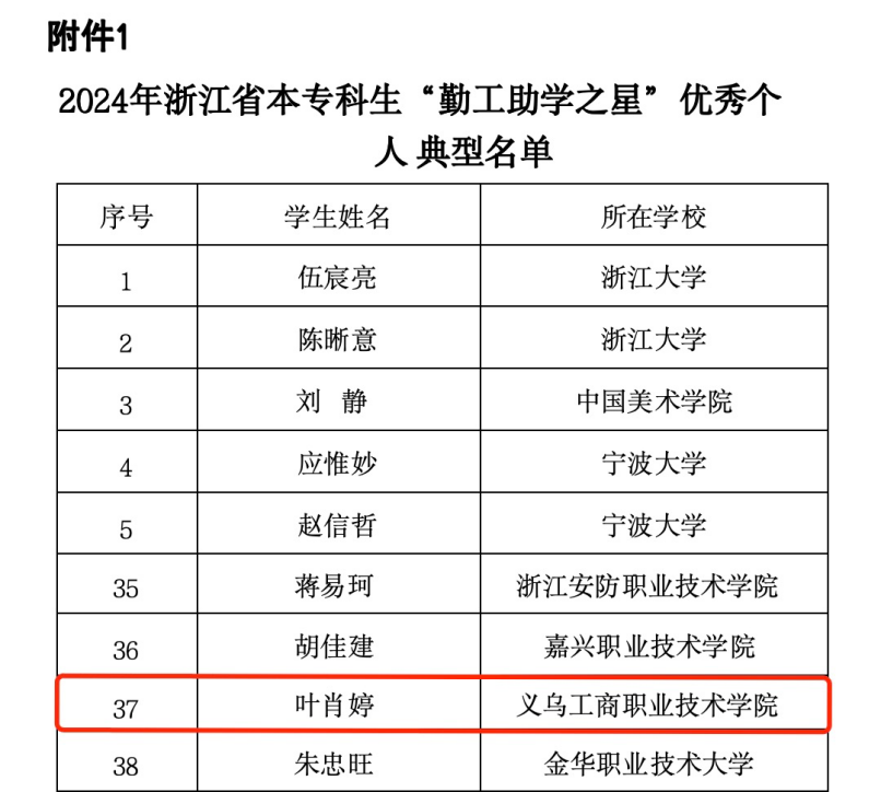 2024年浙江省本专科生“勤工助学之星”优秀个人典型名单