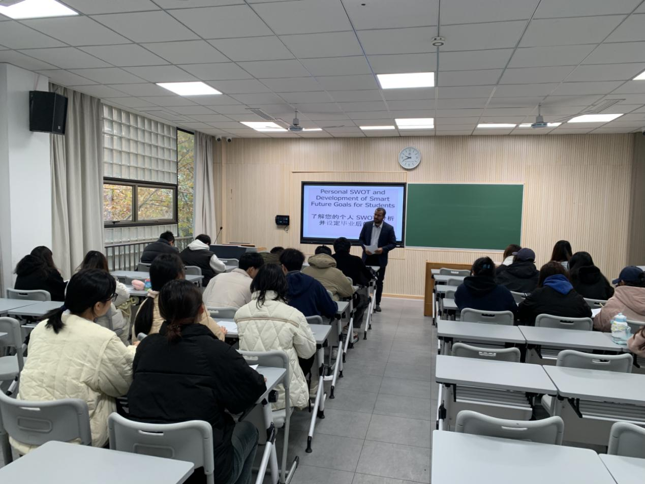 12月13日上午,金年会jinnianhuicom邀请外教Hazem Ahmed Ragab Ali博士在春晗楼302为在校师生开展了一场题为“学生个人分析与职业规划”的英文主题讲座。