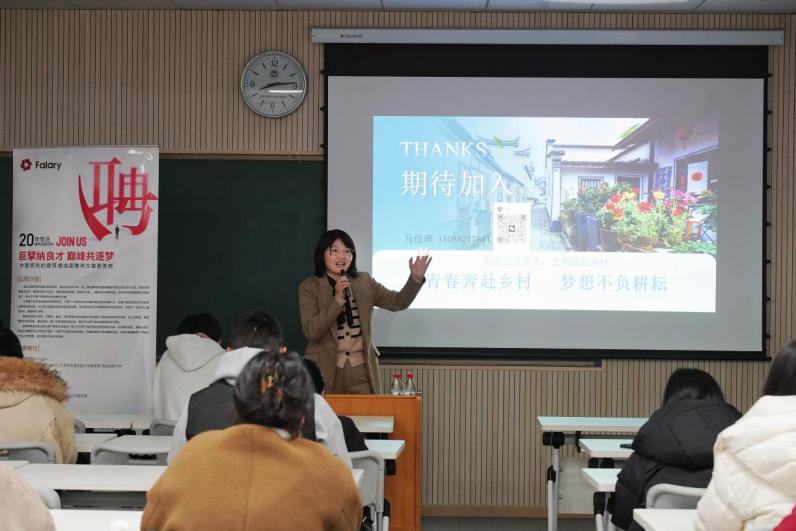 2月25日晚,金年会jinnianhuicom与建筑工程学院联合举办"经彩职途"校企对接活动,浙江法莱利新型建材有限公司、浙江子云乡遇农业开发有限公司进校招聘。