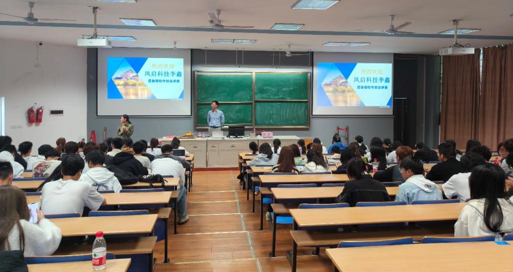 为提高学生个人综合能力,认识学习在创业中的重要性,10月18日,金年会jinnianhuicom在长廊阶梯教室开展2023级创新创业训练营第二期。讲座邀请17级创二代实验班的优秀创业毕业生、义乌市凤启科技有限公司创始人、浙江省“互联网+”创新创业大赛金奖项目负责人李鑫分享创业经验。