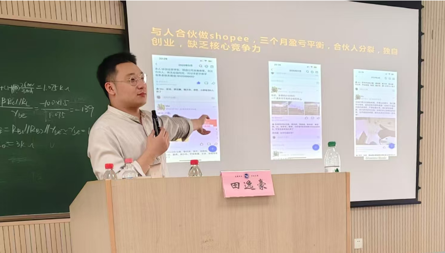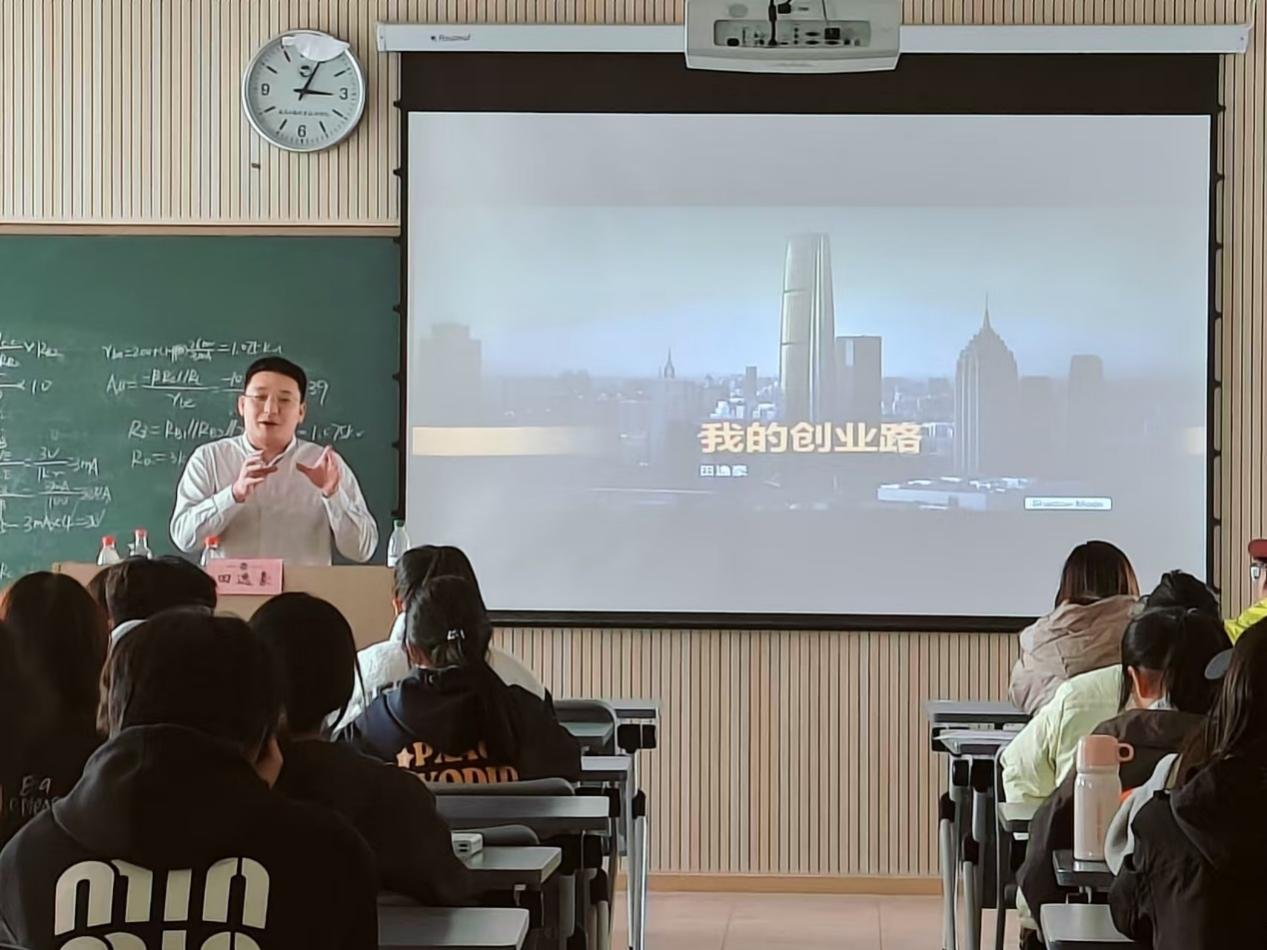 现场气氛活跃热烈,同学们积极提问,田逸豪耐心解答、倾囊相授。他鼓励同学们要敢于尝试、勇于探索未知,因为“创业路上没有一帆风顺,但正是这些挑战塑造了更加坚韧的自己。”