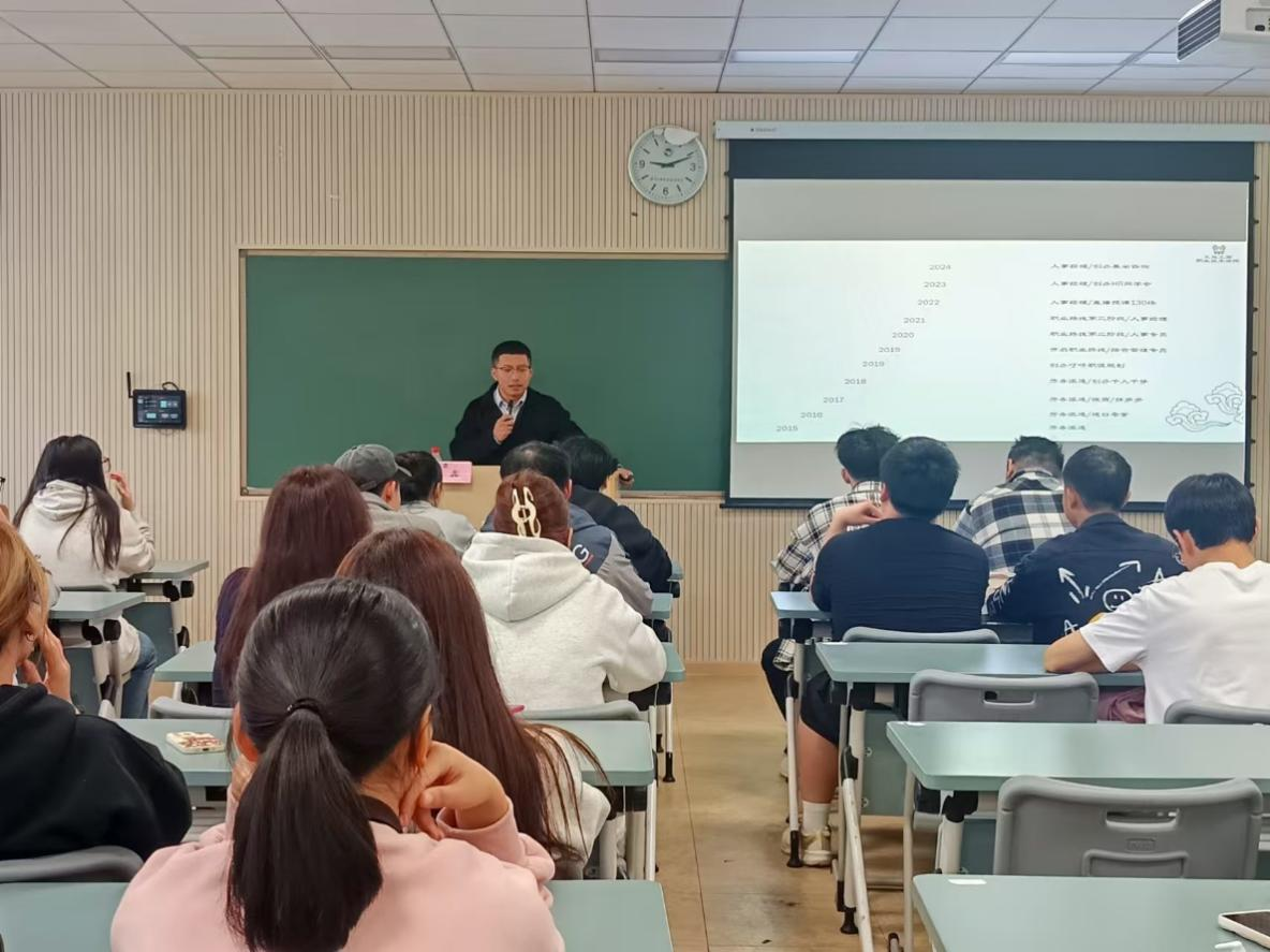 讲座伊始,校友王智宇以深厚的专业素养和丰富的职场经验,从学业、职业、家业和商业四个维度出发,详细阐述了如何平衡和规划个人发展路径。王智宇校友说,学业是个人发展的基石,职业是施展才华的舞台,家业是心灵的归宿,而商业则是实现个人价值的重要途径。他鼓励同学们不仅要注重学业成绩,更要全面提升个人能力,加强职业素养的培养。