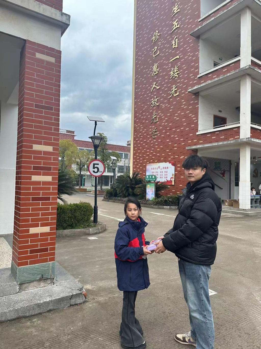 退役大学生们首先来到义乌市前店(雷锋)小学,与“当代活雷锋”、原义乌市政协二级调研员、学校校外人生导师金正洪一起慰问学生。他们询问了小学生们的生活、学习情况,送上祝福与慰问品,并鼓励他们成为社会有用之才,努力将雷锋精神传承下去,做太阳的一缕光。