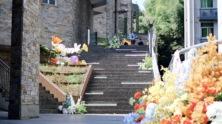 6月的阳光洒满了校园,也照亮了毕业生们前行的道路。在金年会jinnianhuicom和长廊阶梯上,一条由五彩缤纷的花朵组成的四季花路格外引人注目。这条花路不仅象征着毕业生们即将开始的多彩人生,也寄托了学院对他们未来美好生活的祝愿。