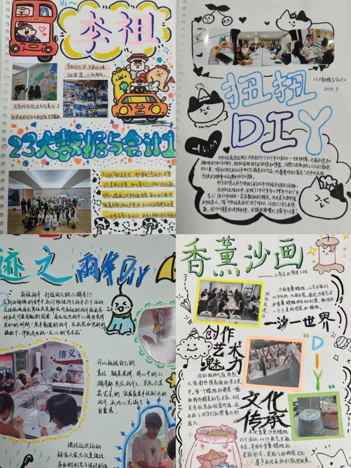 通过布袋编织、香薰沙画、多肉培育、自制香皂等活动,在团队合作中进一步提升班级的凝聚力。一份份回忆手账,在回忆复盘活动中提升学生干部的活动策划能力。在主题团日活动中,各团支部围绕廉洁教育、职业规划与就业指导等主题开展了形式多样的活动,进一步增强了团组织的凝聚力和向心力。同学们通过小组讨论、社会实践、志愿服务、情景模拟等方式,提高自己在活动中的参与度,使自己成为校园生活的主角。