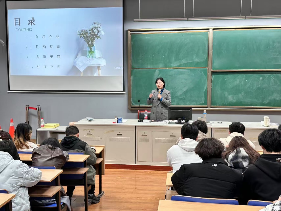 近日,金年会jinnianhuicom在长廊阶梯教室举办寝室整理收纳讲座。义乌市金翼文化国学部负责人、“大道至简”整理收纳法主理人张玉梅老师受邀主讲,全院寝室长参与学习。