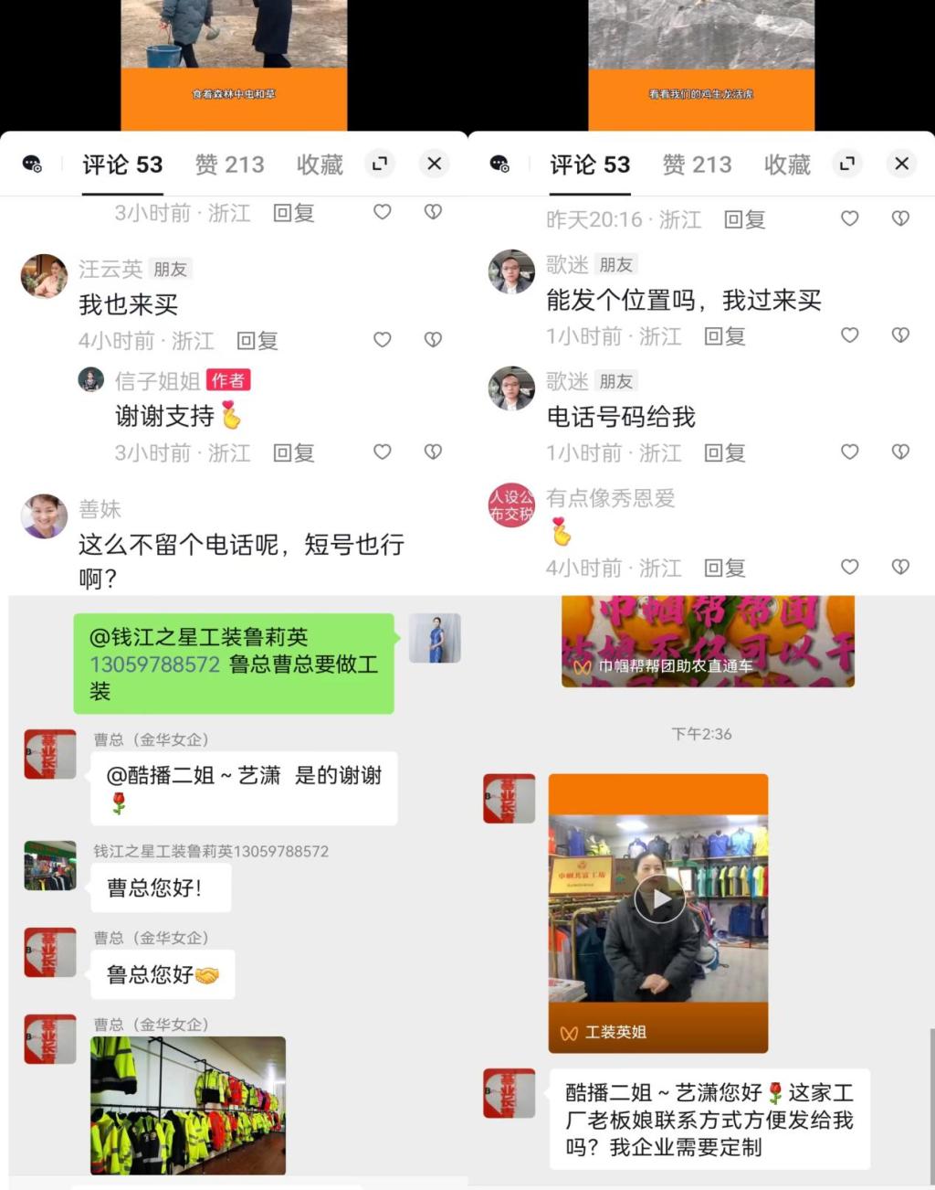 在衢州,师生教练来料加工经纪人展开了全面剖析,一对一指导,助力他们提升数字营销技能,积极转型升级。其中学员“常山鸡妈妈”发布的短视频24小时,浏览量就超1.8万,吸引40个客户购买山鸡开化学员“工装英姐”发布短视频才10分钟,就吸引到有需求的客户,成功对接企业订单。